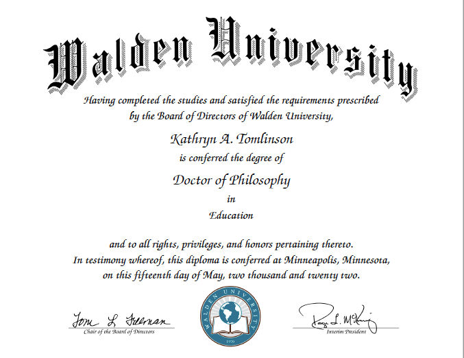 Graduated with a 4.0 GPA with a PhD in Education with an emphasis on Learning, Instruction & Innovation.