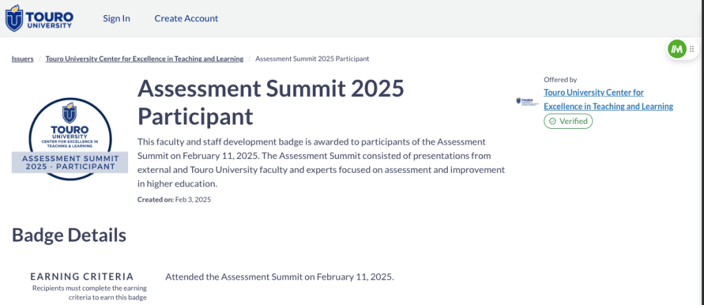 Touro University Assessment Summit Badge
